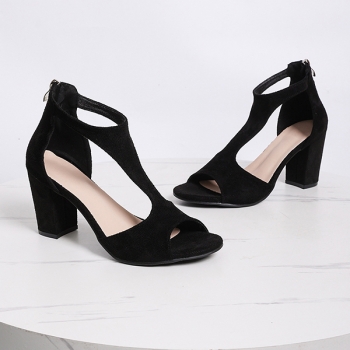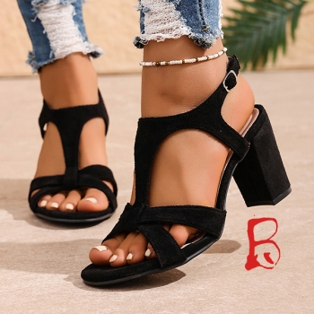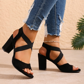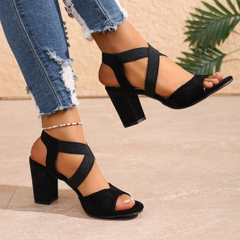 Fashion Square-toe Cross-criss Block Heeled Sandals