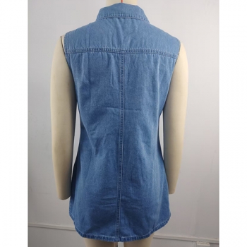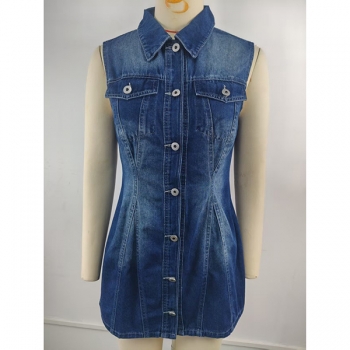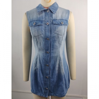 Fashion Stand Collar Sleeveless Front Button Bodycon Old-washed Denim Dress