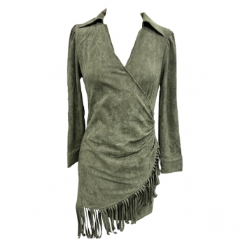 Fashion Stand Collar V-neck Long Sleeve Irregular Tassle Hemline Bodycon Dress