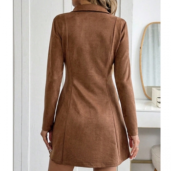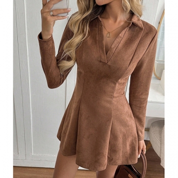 Stand Collar V-neck Long Sleeve Pleated Dress