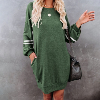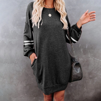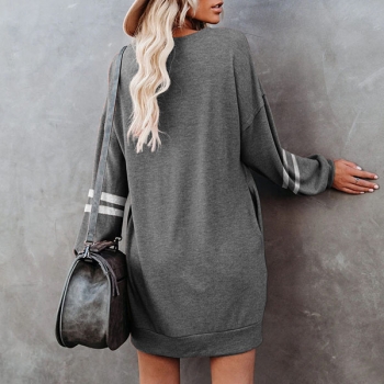 Fashion Striped Spliced Long Sleeve Round Neck Loose T-shirt Dress