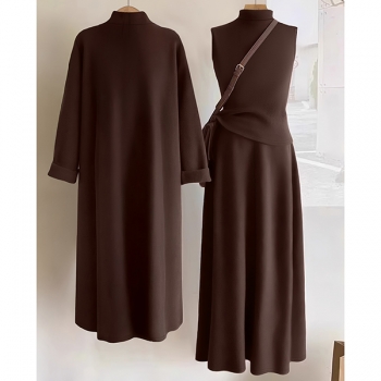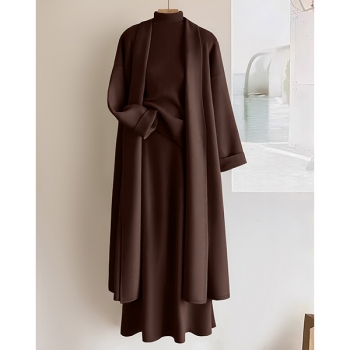 Fashion Three-piece Consist of Mock Neck Sleeveless Shirt, Midi Skirt and Cardigan