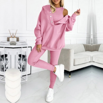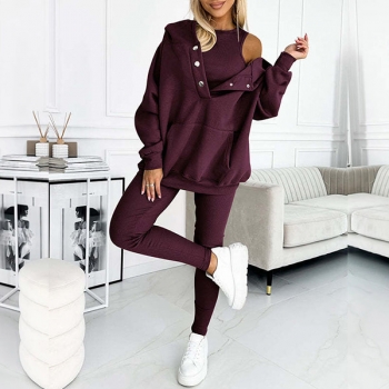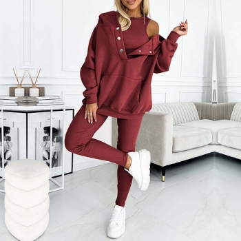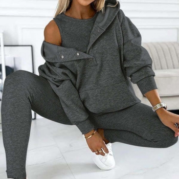 Fashion Three-piece Sport Set Consist of Tank Top, Hooded Sweatshirt and Sweatpants