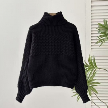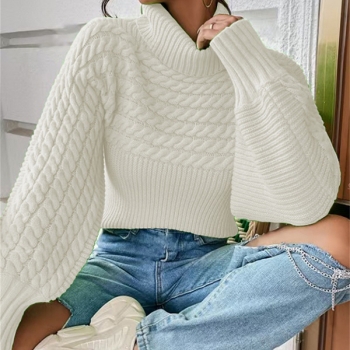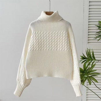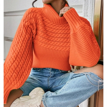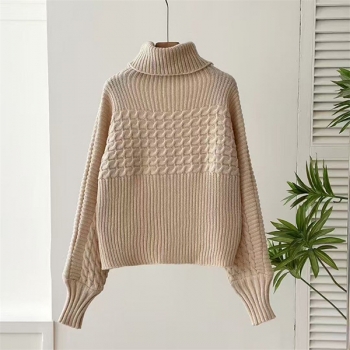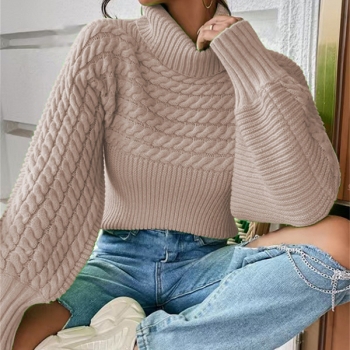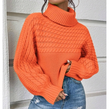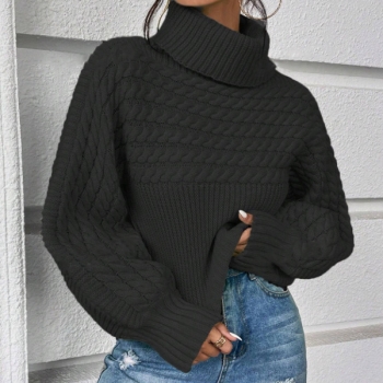 Fashion Turtleneck Long Sleeve Cable Pattern Knitted Sweater
