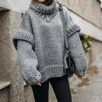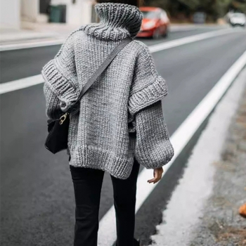Fashion Turtleneck Long Sleeve Loose Knitted Sweater