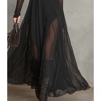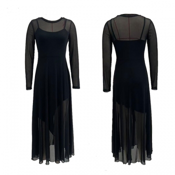 Fashion Two-Piece Set: Black Sheer Mesh Dress with Separate Cami Slip