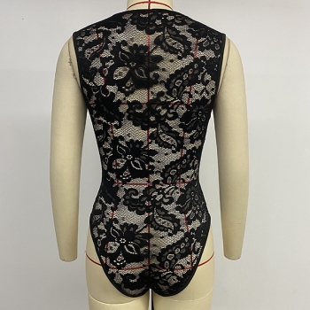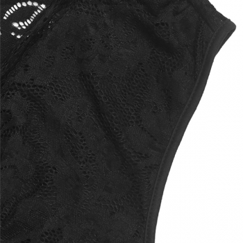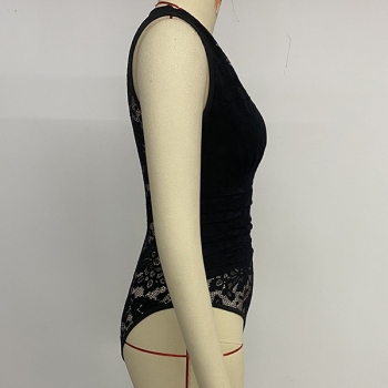 Fashion V-neck Sleeveless Ruched Lace Spliced Bodysuit