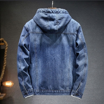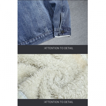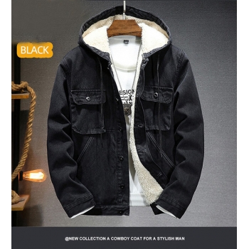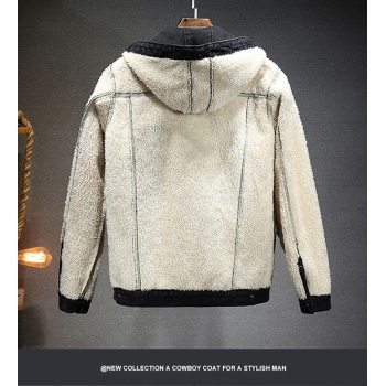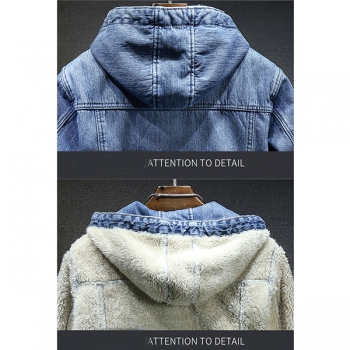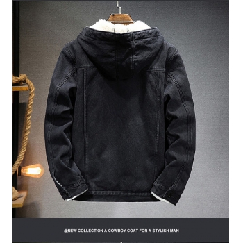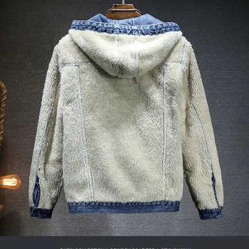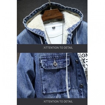 Fashion Warm Plush Lined Old-washed Hooded Denim Jacket for Men