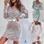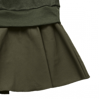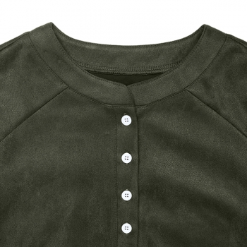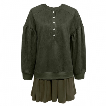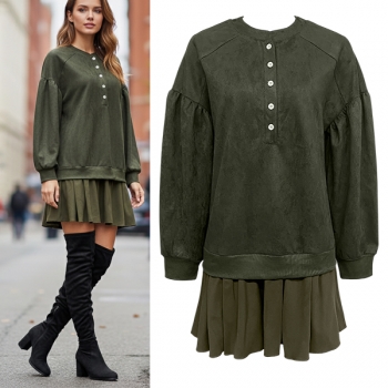 Fashion Front Button Crew Neck Long Sleeve Ruffle Spliced Hemline Dress