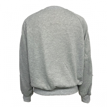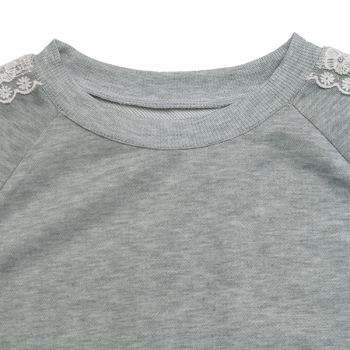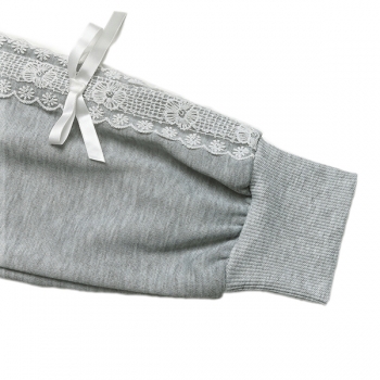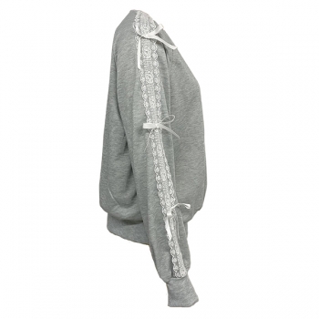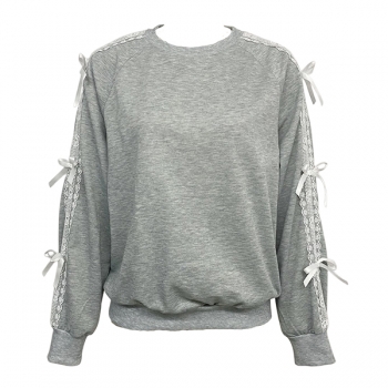 Long-Sleeved Gray Bow Lace Panel Sweatshirt Top