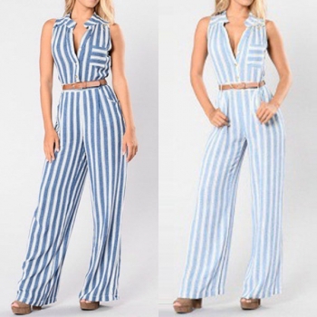 OL Style Sleeveless High Waist Slim Fit Striped Jumpsuit