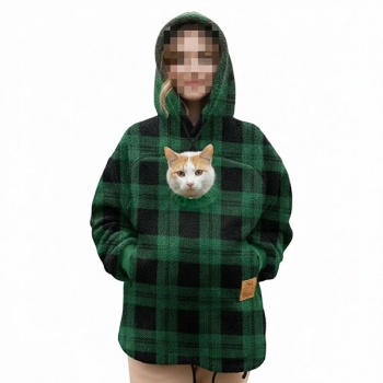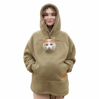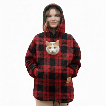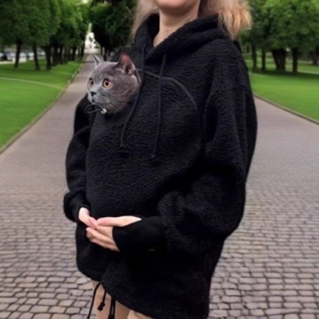 Pet Pouch Hoodie Sweatshirt, Oversized Plush Pullover with Large Kangaroo Pocket for Cats and Small Dogs, Cozy Pet Holder Carrier