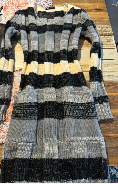 MooiiiiiSize : L Height : 169Cm/5ft 6in Weight : 70Kg/154.4lbs Is It Fit : Het PastHeel mooie trui-jurk, heel warm, goed passend en comfortabel