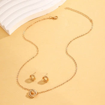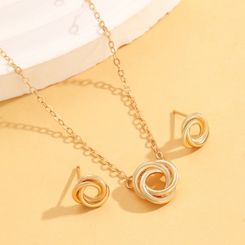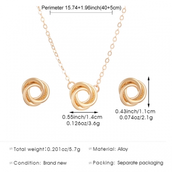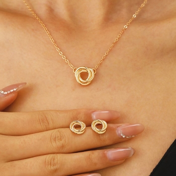 Romantic Love Knot, Twisted Cable Interlocking Circles Pendant Necklace/ Stud Earrings - Symbol of Eternal Friendship and Love
