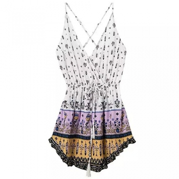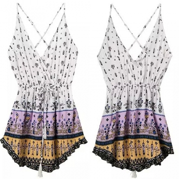 Sexy Backless Deep V-neck Irregular Hem Printed Sling Dress