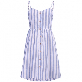 Sexy Backless Front-button Sling Striped Dress