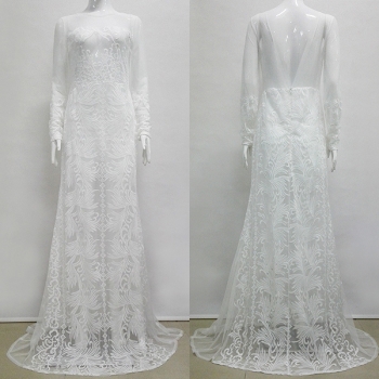 Sexy Backless Long Sleeve Round Neck See-through Lace Party Dress