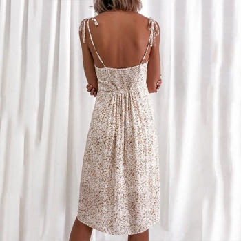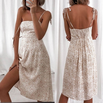 Sexy Backless Slit Hem Printed Sling Dress