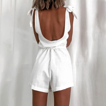 Sexy Backless V-neck High Waist Solid Color Sling Romper