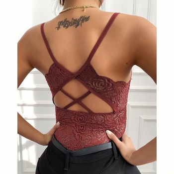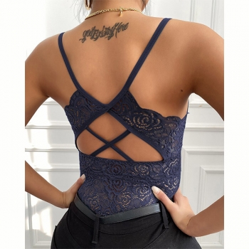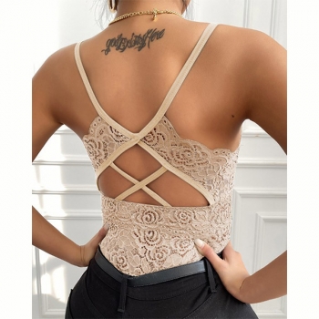Sexy Backless V-neck Solid Color Hollow Out Lace Sling Underwear Bra