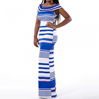 Sexy Contrast Color Off Shoulder Striped Printed Maxi Dress