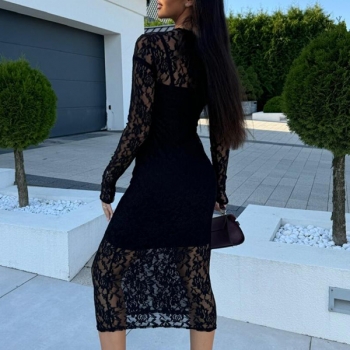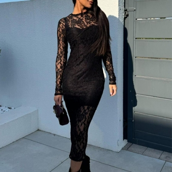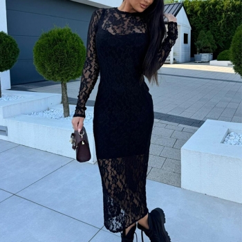 Sexy Crew Neck Long Sleeve Bodycon Lace Dress