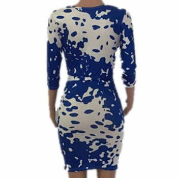 Sexy Deep V-neck 3/4 Sleeve Slim Fit Printed Dress
