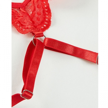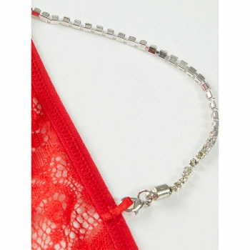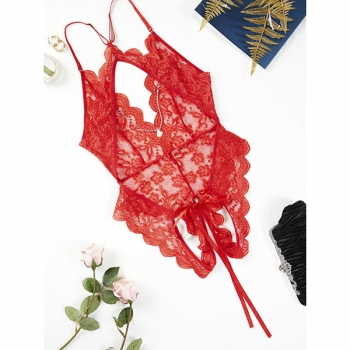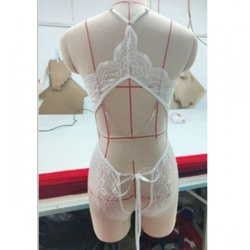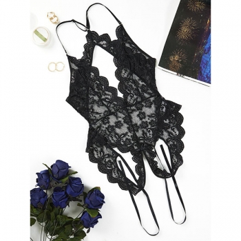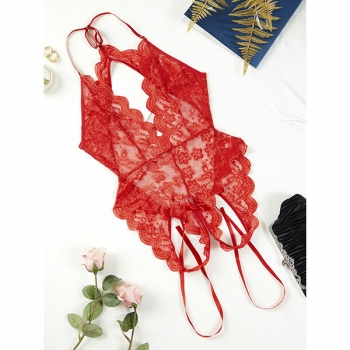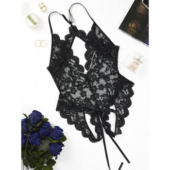 Sexy Halterneck Plunge V-neck Chain Backless Self-tie Lace Lingerie Bodysuit