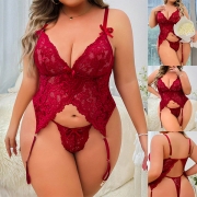 Sexy Lace Spliced Cross-criss V-neck Backless Halterneck Plus-size Nightwear Dress