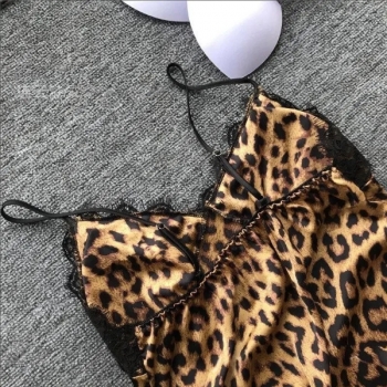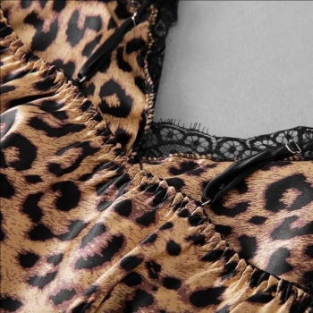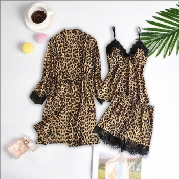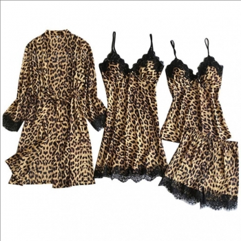 Sexy Lace Spliced Leopard Printed Nightwear Set Four-piece Set