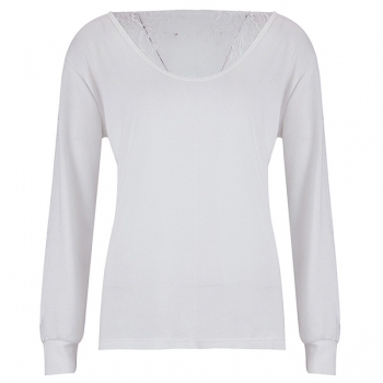 Sexy Lace-up Lace Spliced Long Sleeve Round Neck Top