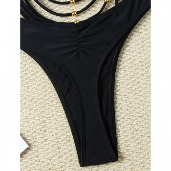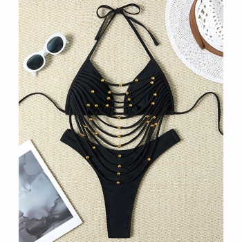 Sexy Luxe Bead Draped Fringe Two-Piece Halter Bikini Set