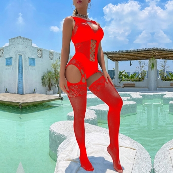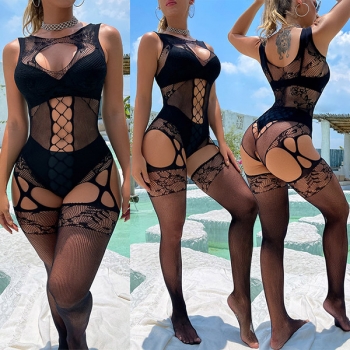 Sexy Mesh-net Front Cutout Lace Elastic Lingerie Jumpsuit