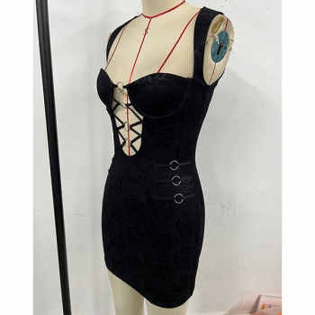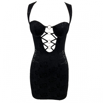 Sexy O-ring Front Lace-up Floral Printed Sweetheart Neckline Bodycon Party Dress