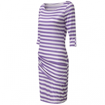 Sexy Oblique Shoulder Half Sleeve Slim Fit Striped Dress