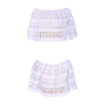 Sexy Off-shoulder Boat Neck Solid Color Lace Top