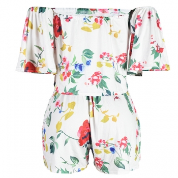 Sexy Off-shoulder Crop Top + High Waist Shorts Printed Two-piece Set