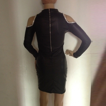 Sexy Off-shoulder Long Sleeve Slim Fit PU Leather Dress