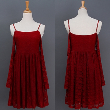 Sexy Off-shoulder Trumpet-sleeve Sling Lace Dress