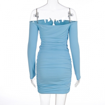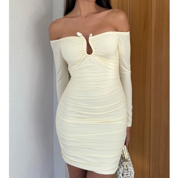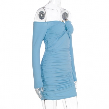 Sexy Off-the-shoulder Metal Decoration Long Sleeve Bodycon Dress