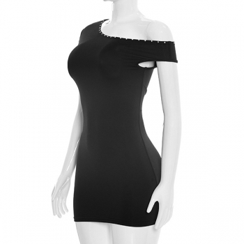 Sexy Slant Shoudler Short Sleeve Bodycon Dress