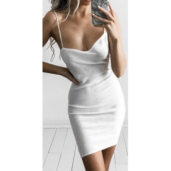 Sexy Solid Color Backless Sleeveless Irregular Hemline Sling Dress