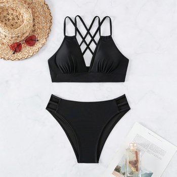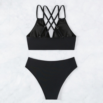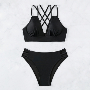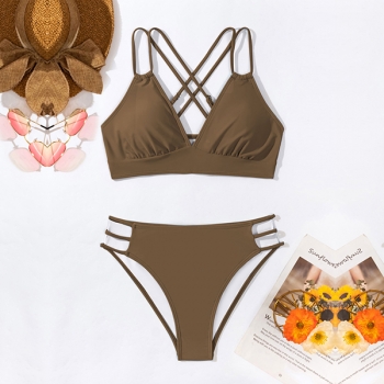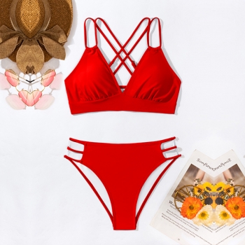 Sexy Solid Color Cutout Two-piece Bikini Set