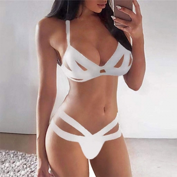 Sexy Solid Color Hollow Out Bandage Lingerie Set