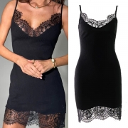 Sexy Solid Color Lace Spliced Tiered Maxi Dress