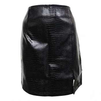 Sexy Solid Color Slit Artifical Leather Mini Skirt