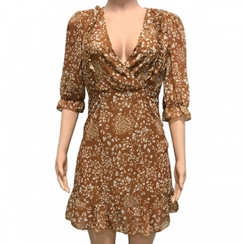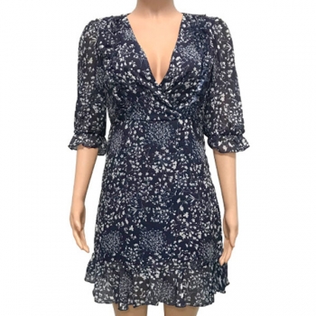Sexy V-neck Half Sleeve Ruffle Hem Printed Dress