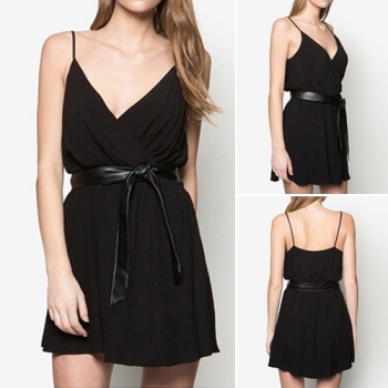 Sexy V-Neck Sleeveless Solid Color Cami Mini Dress