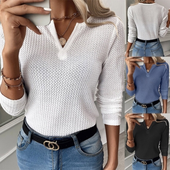 Simple Style Long Sleeve V-neck Solid Color T-shirt