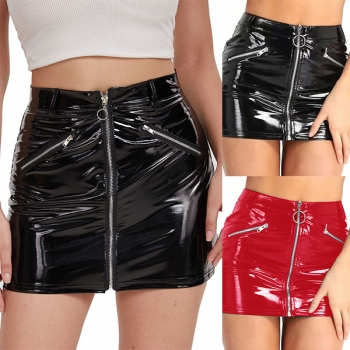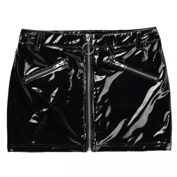 Street Fashion Artificial Leather Zipper Mini Skirt(Size Run Small)